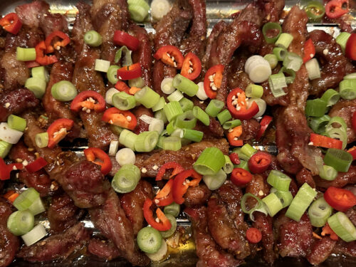 Iberico rib fingers zijn eigenlijk spareribs zonder bot. Het zijn heerlijke smaakvolle stukjes varkensvlees die