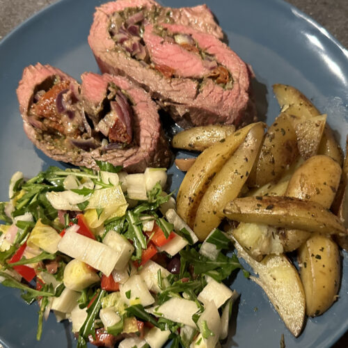 smeer de bavette in met pesto (zijkanten zoveel mogelijk vrij houden)