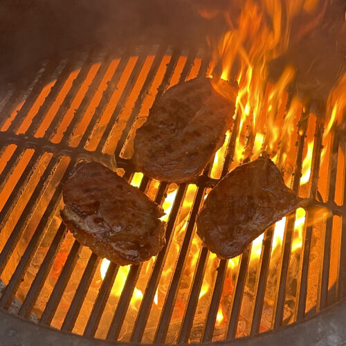 grill de eendenborst aan beide zijden af (draai regelmatig op direct vuur) totdat de kerntemperatuur 52 graden is
