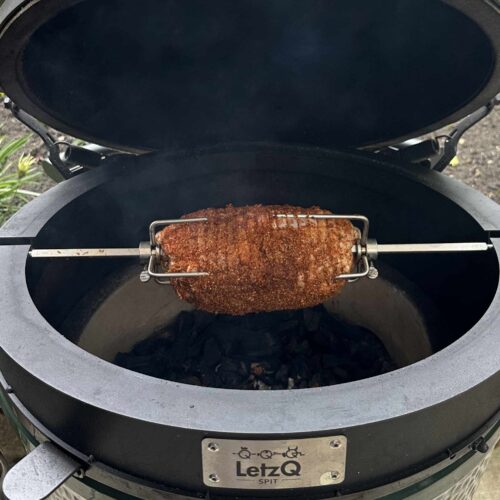 plaats de kernthermometer in de rollade LET OP: dat hij niet tegen de spitpen zit.