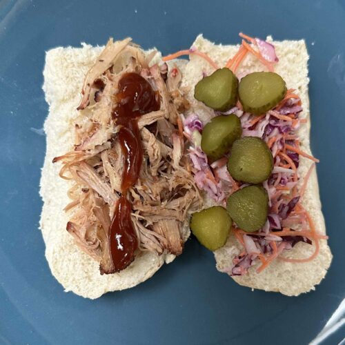 • Pak een broodje en beleg de onderkant met Pulled Porc