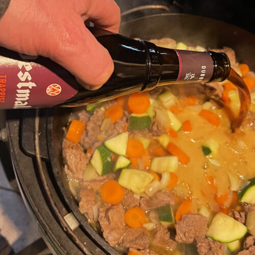 Schenk de flesjes westmalle dubbel in de Dutch oven