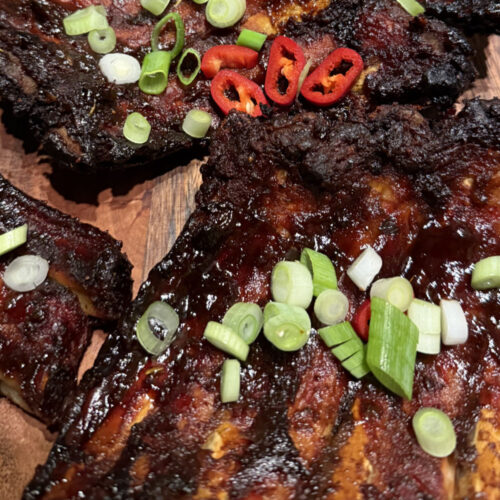 haal de ribs uit de bbq en besmeer evt nog een keer met bbq saus
