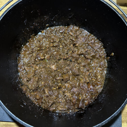 Heerlijk Vlaams Stoofvlees van de Big Green Egg uit de Dutch oven.